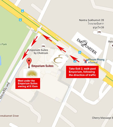 那天就照著官網上的圖,在08:20分左右到了Phrom Phong站旁的Emporium Suites飯店樓下集合,不過最後Cooking with Poo and Friend的車大概遲了快10分鐘才出現,說是因為當天異常塞車,我不介意,因為泰國就是這樣。當天的學員是滿的,除了我以外,還有一個美國女子也是一個人,另外有一對跟我差不多年紀的香港情侶、法國人一家四口(爸媽帶著一對國中雙胞胎女兒)、美國一家三口(媽媽帶著一對小學兒女,然後小學兒女兩人共用一人份)以及法國年輕女子二人組,最後這法國女子二人組遲到,我們等他們十分鐘仍未出現,就先去市場而他們最後在我們逛完市場時才被載來。上車之後就傳閱一個逛菜市場的注意事項,一張A4上面有四個語言,英法德俄,看來Poo真的跟我查到的一樣幾乎沒華人參加,lol。